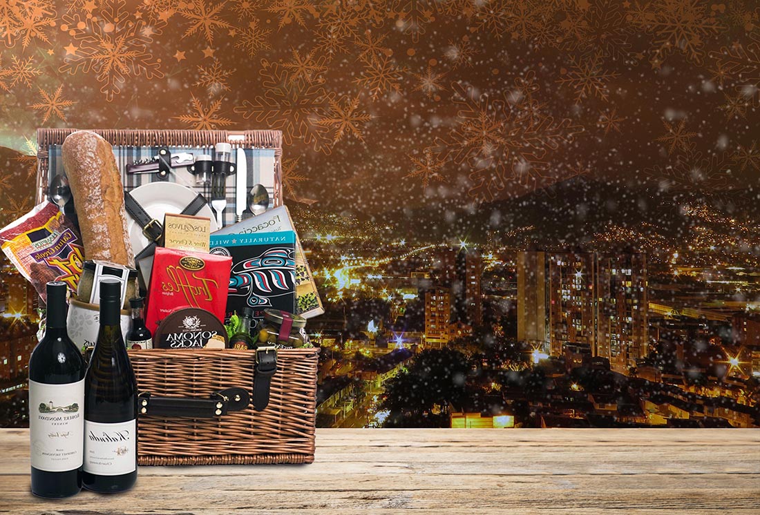 en el corazón de Medellín, la tradición de compartir la alegría de la Navidad a través de estas cestas meticulosamente confeccionadas perdura. Por ello, te invitamos sumergirte en la rica cultura navideña de la ciudad mientras exploras una variedad de opciones que van desde sabores autóctonos hasta exquisiteces internacionales.