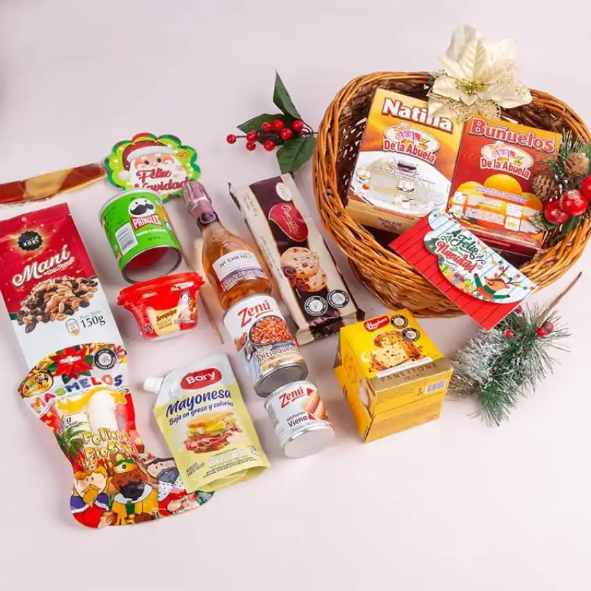 En esta se incluye una panetonne Bauducco de 100 gramos, patatas fritas Pringles de 37 gramos y un vino espumoso Jp Chenet de 200 ml, el cual es el complemento ideal para el resto de elementos comestibles. Además, entre sus elementos comestibles también vienen salchichas Zenu y galletas Canasticas de 112 gramos.