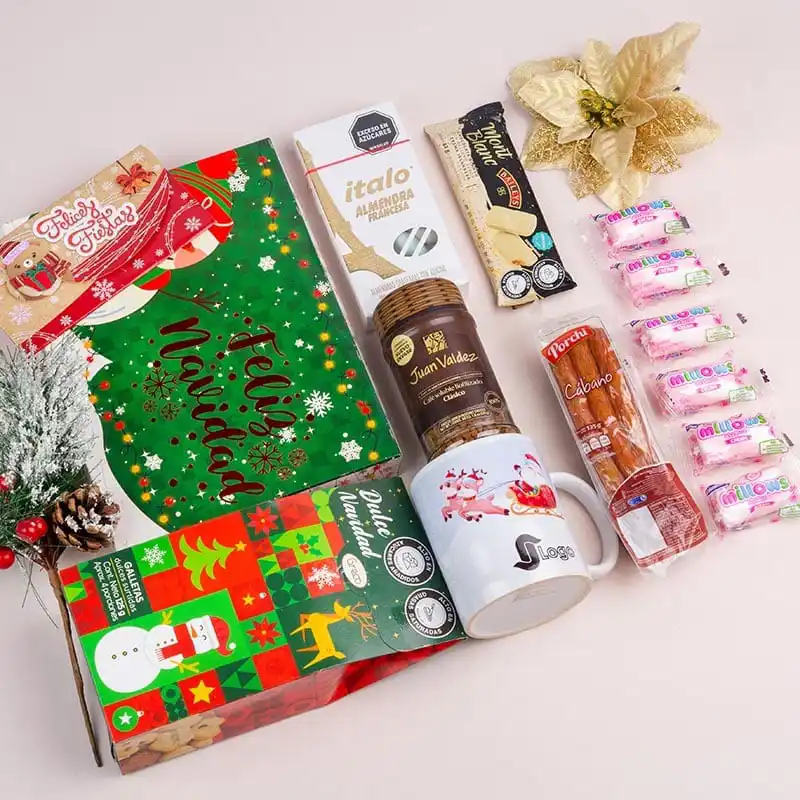 La ancheta dispone de gran variedad de productos que seguramente todos querrán tener en sus celebraciones decembrinas. Entre estas está su café instantáneo Juan Valdez de 50 gramos, el cual amarán los amantes del café. También, los amantes de los dulces estarán complacidos con sus galletas caja navidad de 135 gramos, 4 unidades de masmelos Millows, Chocolatina MONTBLAC.