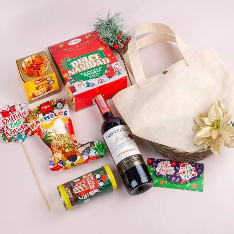 La ancheta regalito navideño es el obsequio perfecto para cuando te invitan de improvisto a una fiesta navideña y no sabes qué llevar a los anfitriones. Este puede ser un gran regalo, pues sirve como elemento decorativo de centro de mesa o para adornar la base del árbol de navidad. Otra opción, es obsequiarlo como gesto navideño por parte de tu empresa, al incluir el logo o marca de tu empresa.