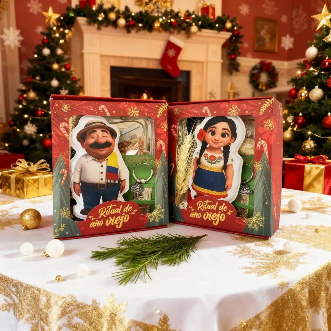Este kit no es solo un muñeco con relleno seguro para quemar, sino una experiencia completa que combina elementos cargados de simbolismo. Dentro de una hermosa caja de Navidad impresa a color, encontrarás todo lo necesario para realizar la ceremonia de despedida del año de manera organizada, significativa y sin preocupaciones.